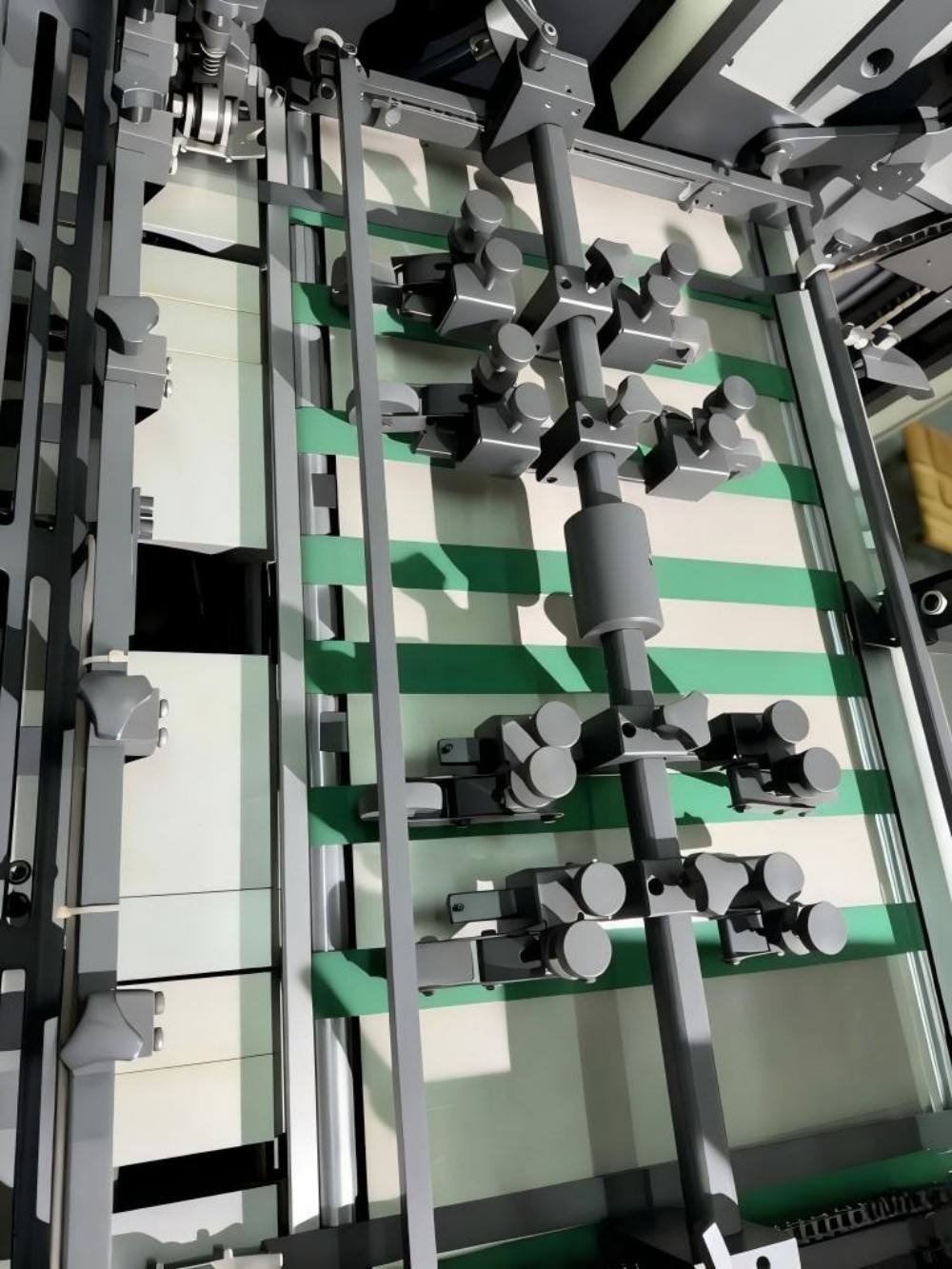 3) Sallanır kollu kağıt besleme ve kağıt aktarma mekanizmaları, kağıdı doğru kayıtla taşır; bu, saatte 12000 sayfalık yüksek hızda çalışmada yüksek görüntü baskı kalitesini garanti eder, dolayısıyla oldukça üretkendir.