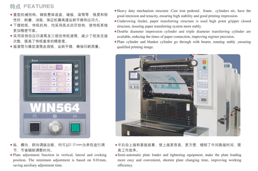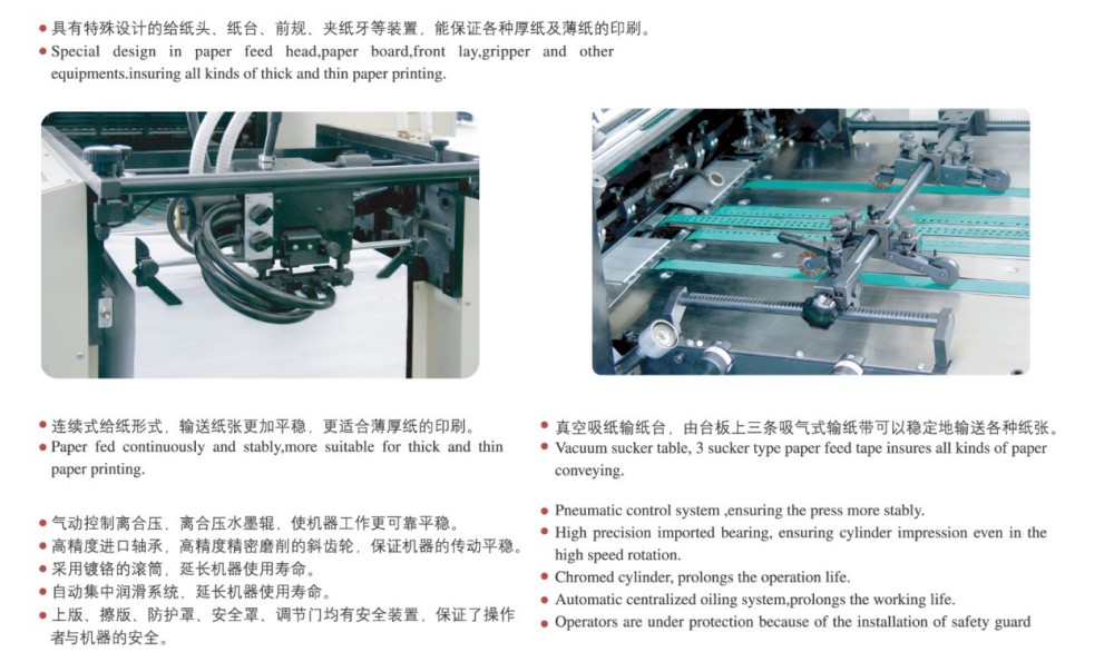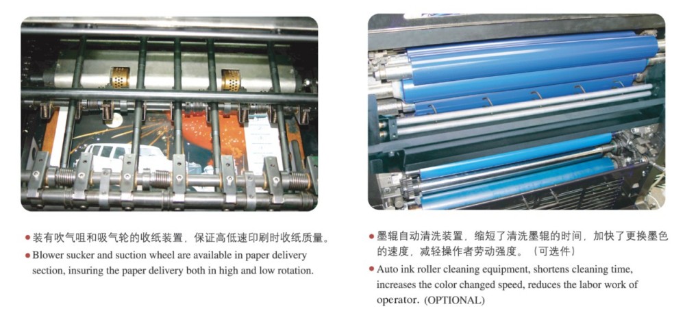 A2 Dört Renkli Kısa Süreli Ofset Baskı Makinesi söz konusu olduğunda, onu güvenilir kılan yüksek performanslı modüllerle üretilmiştir; kısa süreli yazdırma görevleri için mükemmeldir. Bu modüller, yüksek hassasiyetli silindirler ve dişliler, sağlam bir kağıt besleme mekanizması, hassas bir kağıt kayıt sistemi ve sabit bir mürekkep besleme sistemi içerir. Özellikle kısa süreli işler için pazarın yüksek kaliteli, verimli ve uygun maliyetli tek sayfa renkli baskı ihtiyaçlarını karşılar. 0,04 mm ince kağıttan 0,4 mm kalın kartona kadar çok çeşitli kağıt kalınlıklarını işleyebilir. Dokunmatik ekran kontrolü ve sezgisel programlama arayüzü sayesinde tüm ayarlarda ve yazdırma parametrelerinde kolayca akıllı ayarlamalar yapabilirsiniz.