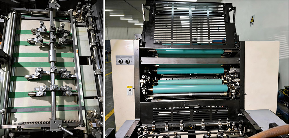9) Taşıyıcı halkalardaki plaka silindiri ve battaniye silindiri, presin yüksek kalitede çıktı üretmesini ve yüksek hızda sabit ve düzgün çalışmasını sağlar.