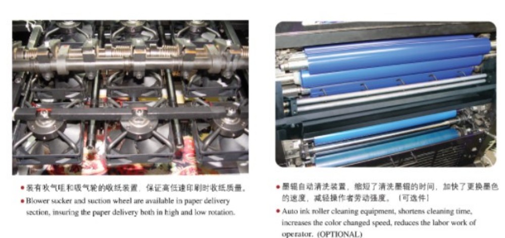 Büyük A3 Dört Renkli Ambalaj Baskı Ofset Baskı Makinesi, yüksek performanslı modüllerle tasarlanmıştır ve bunların hepsi en üst kalitededir; yüksek hassasiyetli silindirler ve dişliler, güçlü bir kağıt besleme mekanizması, yüksek hassasiyetli bir kağıt kayıt sistemi ve istikrarlı bir mürekkep besleme sistemi. Yüksek kaliteli, verimli ve uygun fiyatlı tek sayfa renkli baskıya yönelik pazarın gereksinimlerini karşılamak üzere tasarlandı. Yalnızca tek bir kağıt kalınlığına bağlı kalmanıza da gerek yok; ince kağıttan (0,04 mm) kalın kartona (0,4 mm) kadar çalışır. Ayrıca, ayarları ve yazdırma parametrelerini akıllı ve basit bir şekilde ayarlamanıza olanak tanıyan, sezgisel programlama arayüzüne sahip bir dokunmatik ekran kontrolü de bulunmaktadır.