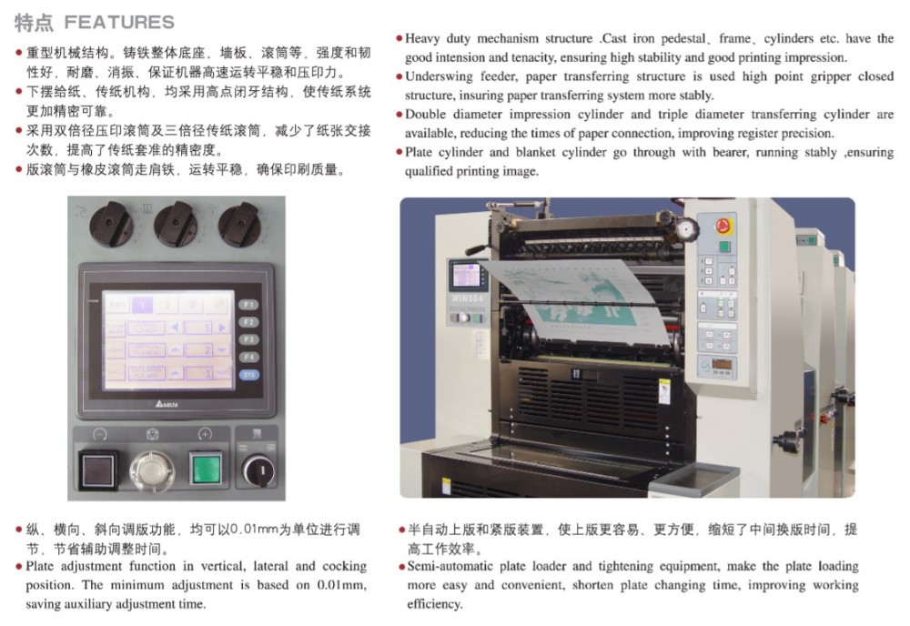 Büyük A3 Dört Renkli Kısa Süreli Baskı Makinesi söz konusu olduğunda, onu güvenilir kılan yüksek performanslı modüllerle üretilmiştir; kısa süreli yazdırma görevleri için mükemmeldir. Bu modüller, yüksek hassasiyetli silindirler ve dişliler, sağlam bir kağıt besleme mekanizması, hassas bir kağıt kayıt sistemi ve sabit bir mürekkep besleme sistemi içerir. Özellikle kısa süreli işler için pazarın yüksek kaliteli, verimli ve uygun maliyetli tek sayfa renkli baskı ihtiyaçlarını karşılar. 0,04 mm ince kağıttan 0,4 mm kalın kartona kadar çok çeşitli kağıt kalınlıklarını işleyebilir. Dokunmatik ekran kontrolü ve sezgisel programlama arayüzü sayesinde tüm ayarlarda ve yazdırma parametrelerinde kolayca akıllı ayarlamalar yapabilirsiniz.